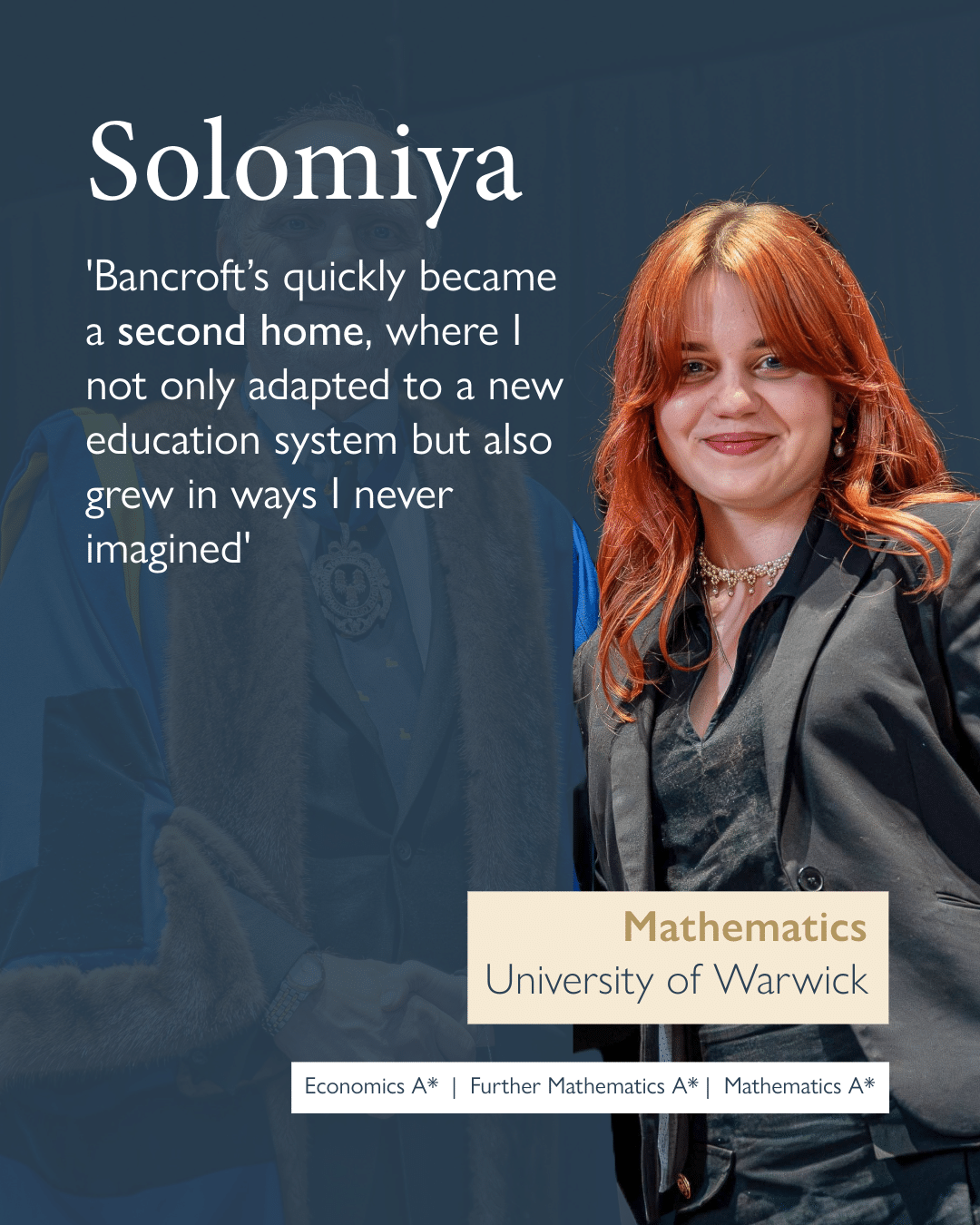 Two years ago, Solomiya joined Bancroft’s from Ukraine on a full bursary. The transition to a new country, a different education system, and studying in her third language could have been overwhelming, but Solomiya’s experience has been nothing short of transformative.