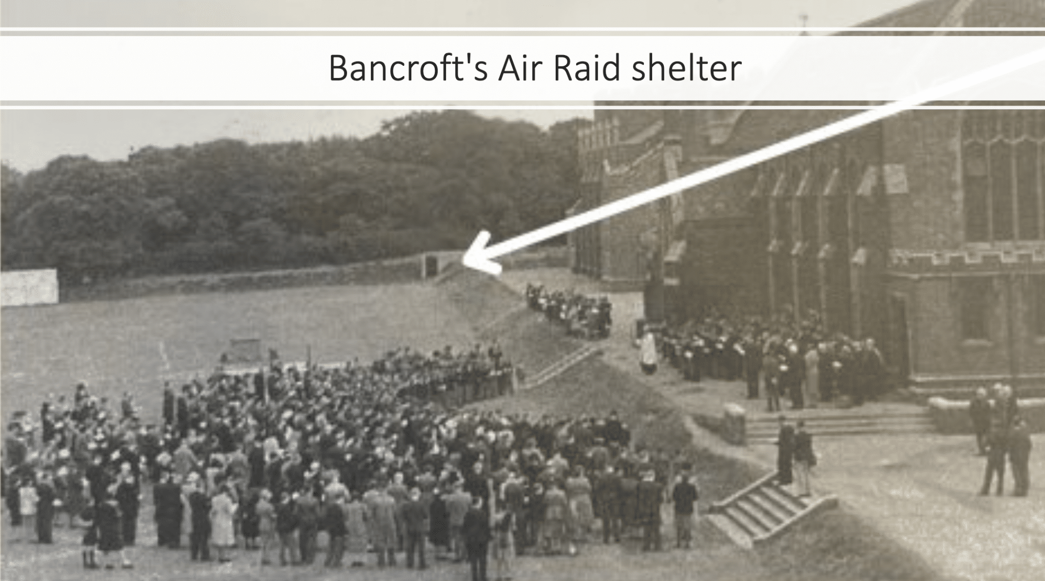 For the civilians in London and those at Bancroft’s they were now free of the fear of air raids. Since the start of the war boys at school had to carry their gas masks and the boarders had had to sleep in the air raid shelter, under what is now the swimming pool.