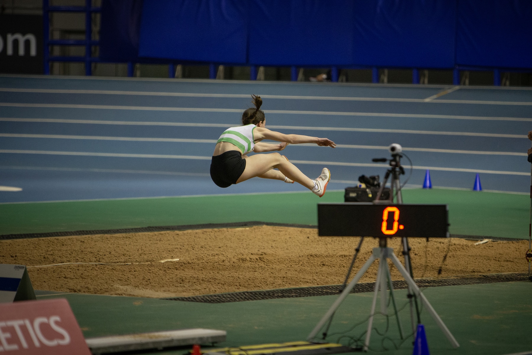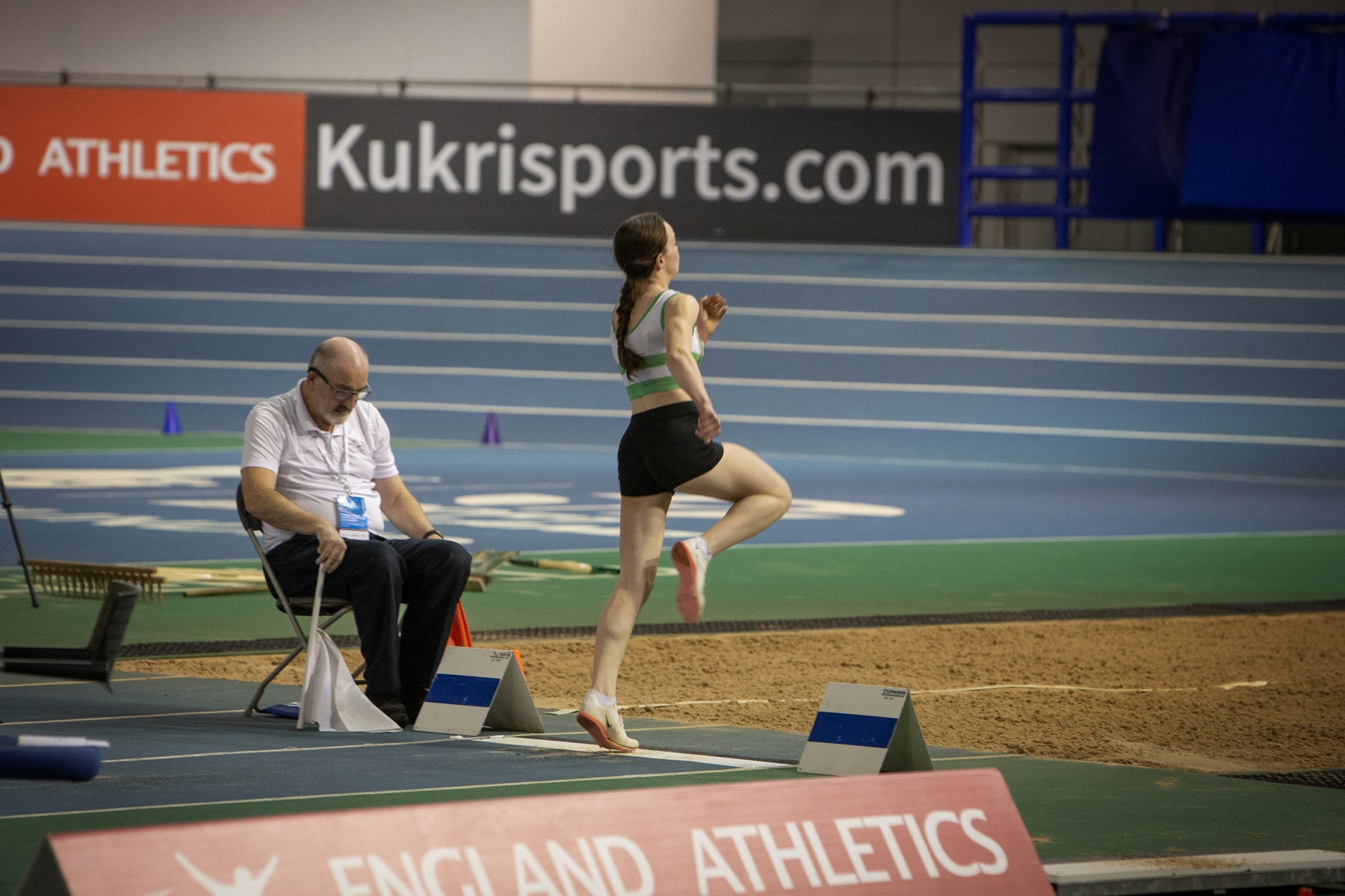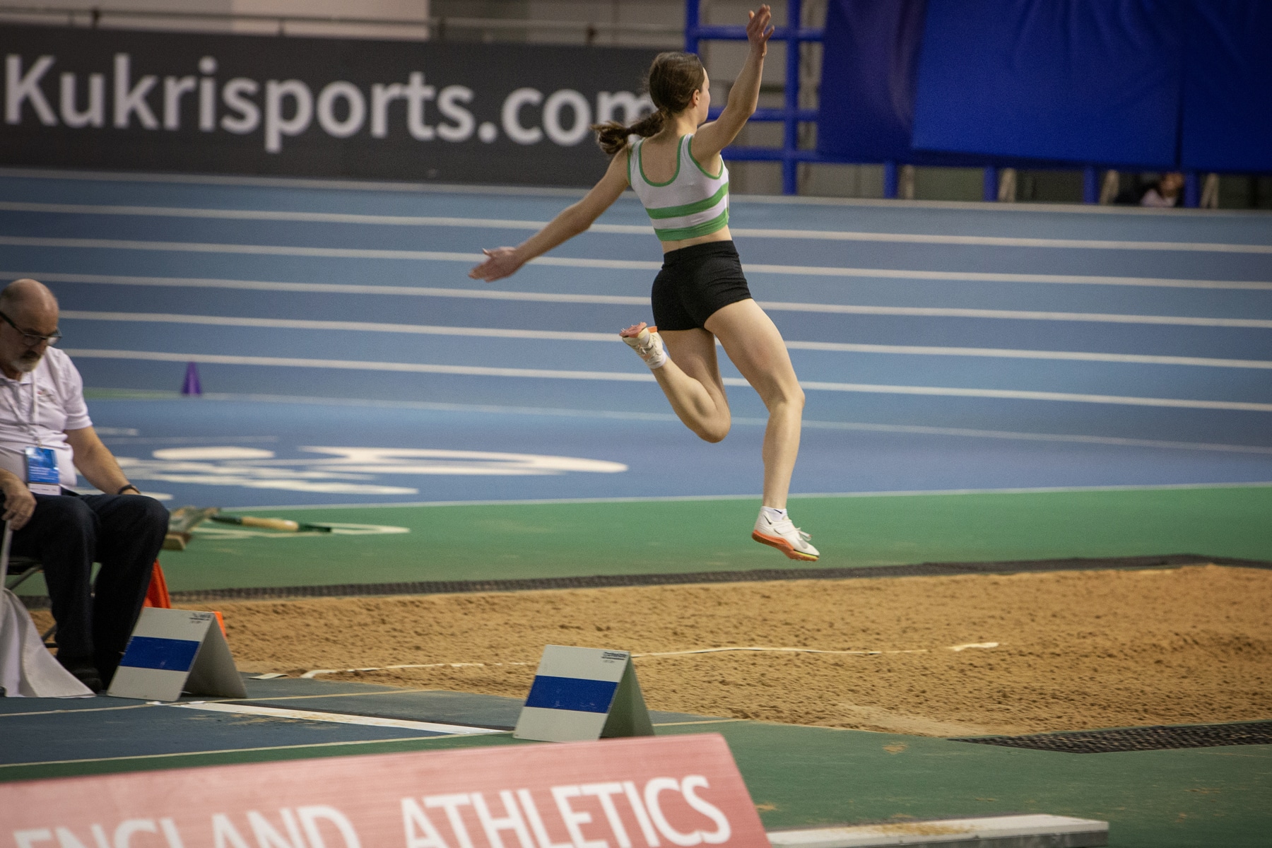 Caitlin, who competes for Woodford Green Athletics Club, travelled to the EIS (English Institute of Sport) in Sheffield for the Nationals which were held over the weekend of 11 and 12 February. U20, U17 and U15 age groups were contested, with athletes from England, Scotland, Wales, Republic of Ireland and Northern Ireland eligible to take part. There were minimum entry standards and Caitlin qualified to compete in the U15 girls’ Long Jump, 200m. and 60m She opted not to take part in the 60m, so she could focus solely on the Long Jump event on the first day of the competition.