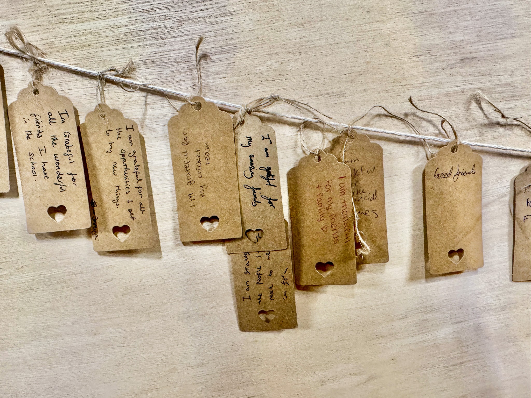 During form time, pupils were invited to reflect on the topic more deeply. Every year group also wrote messages of gratitude on luggage tags, which are now displayed on the Wall of Gratitude outside the Staff Common Room.